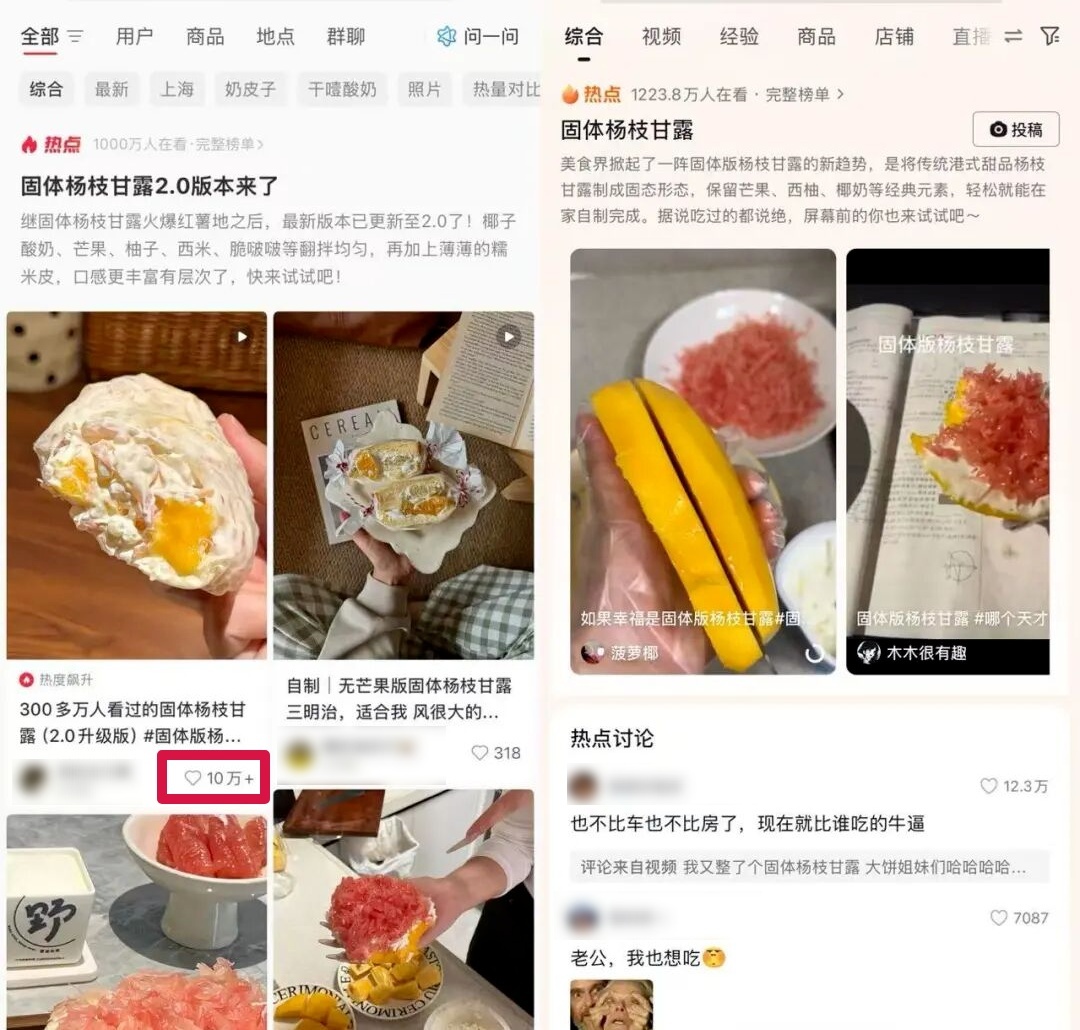 网友在社交媒体分享“固体杨枝甘露”的制作方法